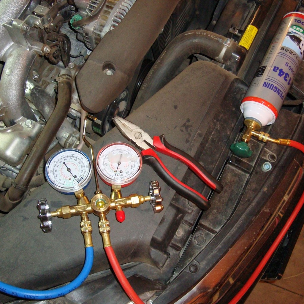 Заправка автокондиционера под ключ за 2000 руб. (включая аппаратную диагностику во время вакуумации системы).